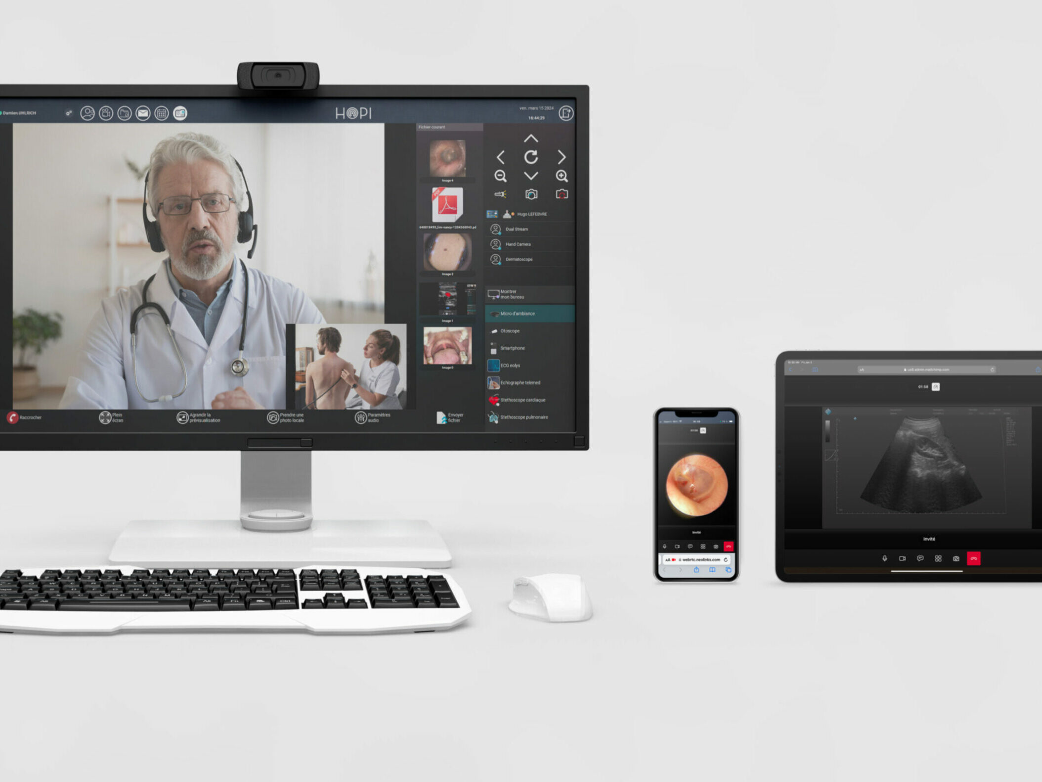 L’échographe Doppler : il transmet instantanément une double image (sonde et vue d’ambiance), permettant au médecin distant
